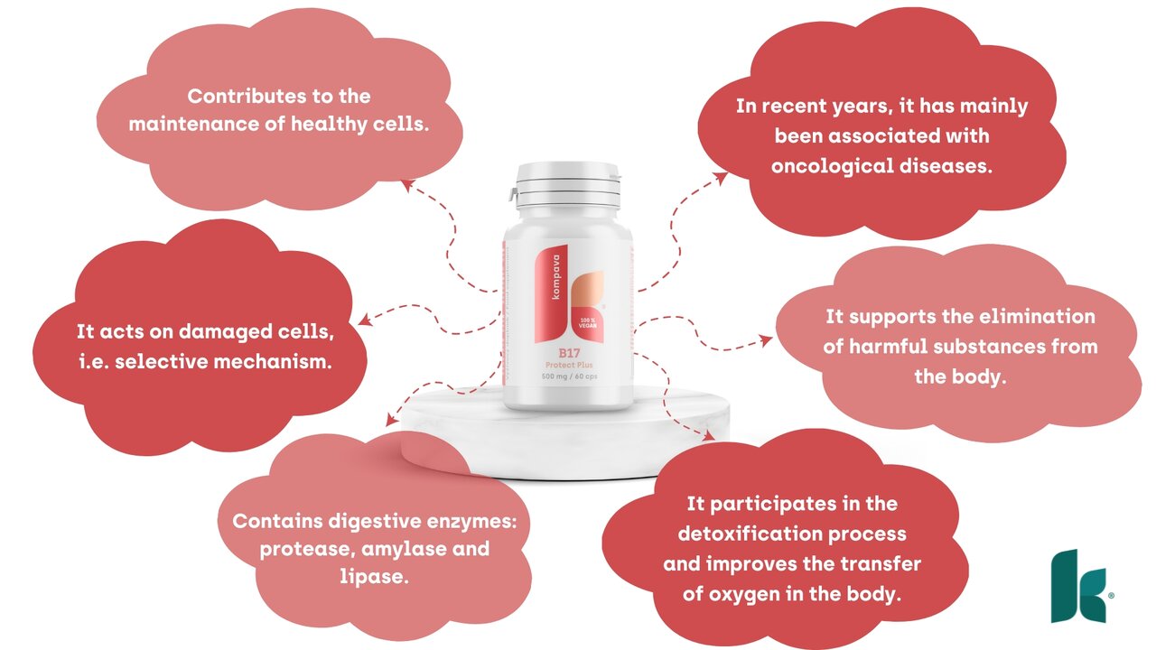 Amygdalin and its positive impact on human health have been associated primarily with oncological diseases in recent years. The effect of amygdalin increases in the presence of other substances, especially antioxidants or enzymes found in pancreatic juice for the decomposition and removal of damaged or unnecessary cells from the body.