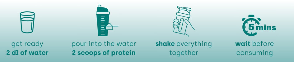 Whey, egg, milk and soy proteins - thanks to this combination of proteins, the protein is broken down for a longer time (4-5 hours).