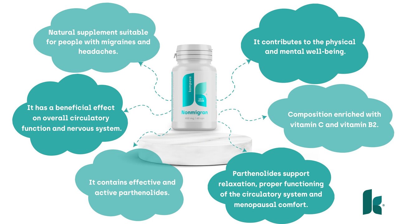 The Nonmigran is an important part of life of every person who suffers from frequent migraines. Thanks to the combination of natural ingredients, it has a positive effect on the overall function of the circulatory and nervous system.
