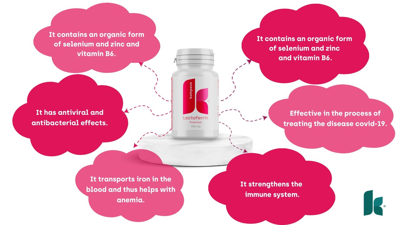 Is a natural glycoprotein, which is one of the strongest immunostimulatory natural means to support immunity. It is found in breast milk and in smaller amounts in most body fluids, located on the openings of the body - the oral and nasal cavities, or in the eye. He is a fighter in the first line of defense against pathogens on each of these openings. - Selenium